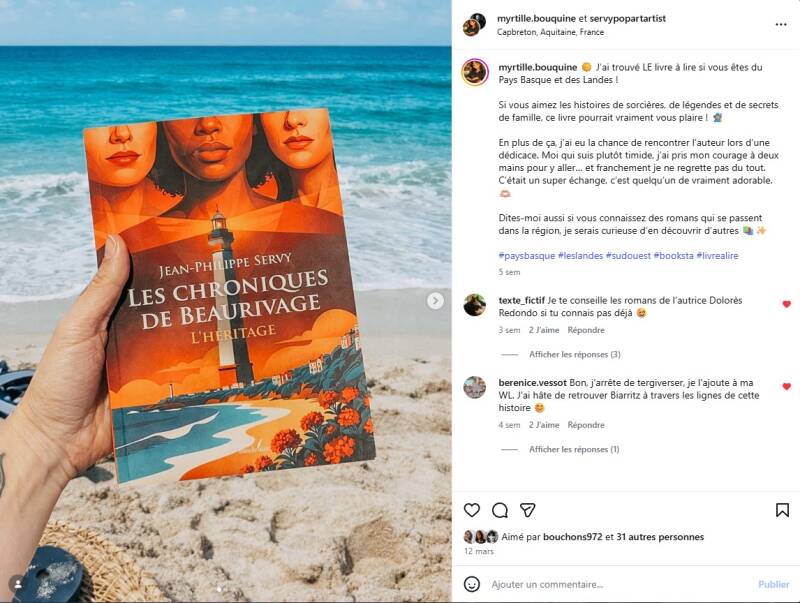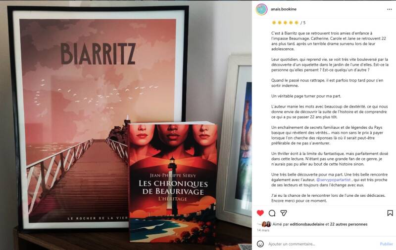 Sur Instagram, Les Chroniques de Beaurivage, thriller français 2026 de Jean-Philippe Servy, bénéficient de retours spontanés de lecteurs et de créateurs de contenu.